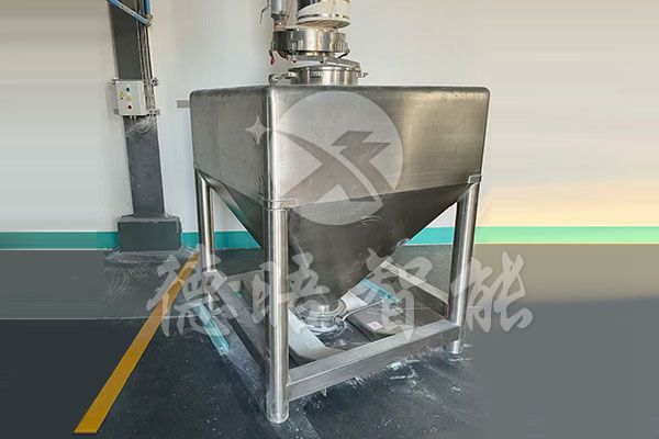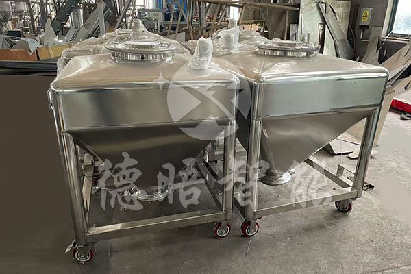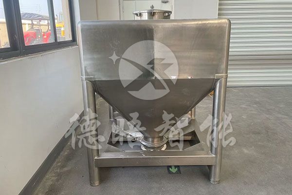 物料通过人工、真空上料、楼层落料或专用提升机进入混合筒内,料斗对称的轴线与回转轴轴线连成一夹角,不同组分物料在密闭的料斗种进行三维空间运动,产生强烈翻转和扩散收缩作用,达到良好的混合效果。