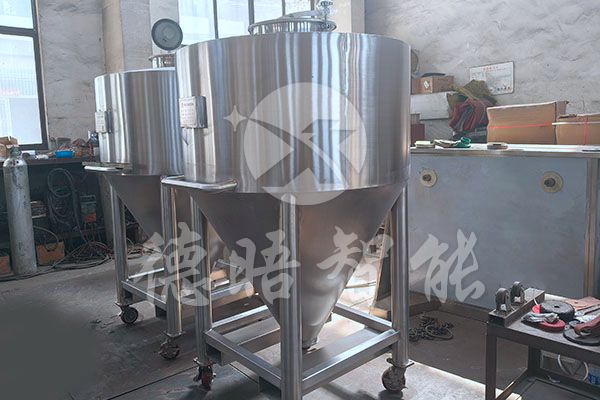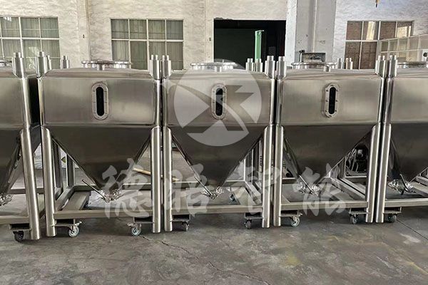 配快开式卡箍密封斗盖,4只PU脚轮不磨损地面,移动轻便噪音低,内表面镜面抛光无清理死角,大锥底设计+大口径粉体出料阀(或配真空出料器出料),排料顺畅。